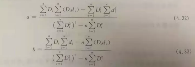 各段距離觀測(cè)值需要進(jìn)行氣象改正、傾斜改正及儀器加、乘常數(shù)改正。用經(jīng)過改正后的距離觀測(cè)值與相應(yīng)的基線值比較,按線性回歸分析法計(jì)算,得: