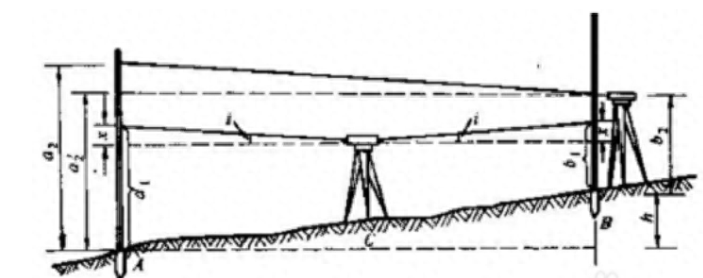 2、將水準(zhǔn)儀放在A點(diǎn)或B點(diǎn)約2米處(C點(diǎn)), 整平,讀出標(biāo)尺讀數(shù)a2, b2;