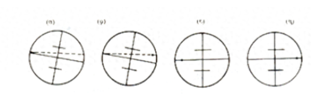 由于十字絲裝置的形式不同,校正方法也有所不同,如上圖的形式,可用螺絲刀松開十字絲環(huán)的校正螺絲,撥正十字絲環(huán)。如圖的形式,則需要卸下目鏡處的外罩,用螺絲刀松開四個(gè)十字絲的固定螺絲,然后撥正十字絲環(huán)。最后再旋緊校正螺絲,此項(xiàng)檢校也須反復(fù)進(jìn)行,直到條件滿足為止。